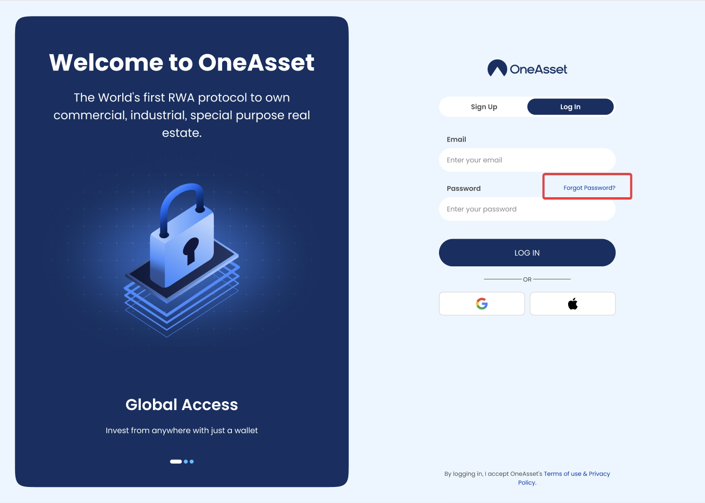 Click the Login button and access your dashboard using your updated credentials.