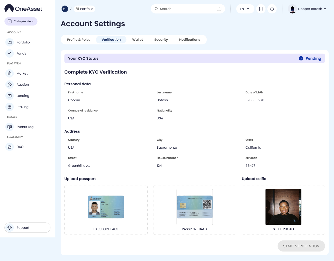 Your verification status is displayed as Unverified, Pending, or Verified.