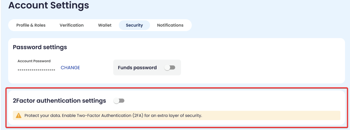 2FA settings