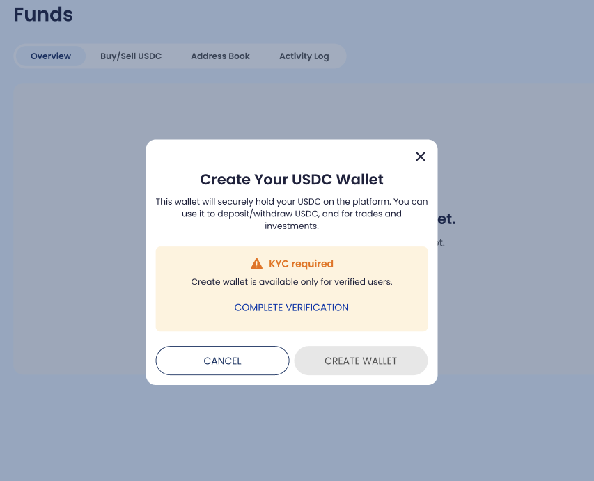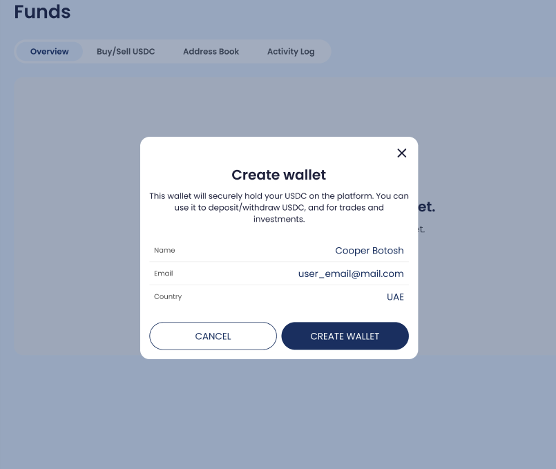 If no wallet exists, click Create USDC Wallet.