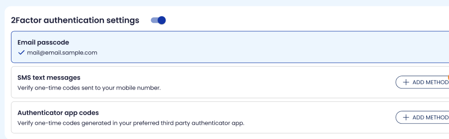 Enable 2FA using the available method (Authenticator / Email / SMS, as displayed).