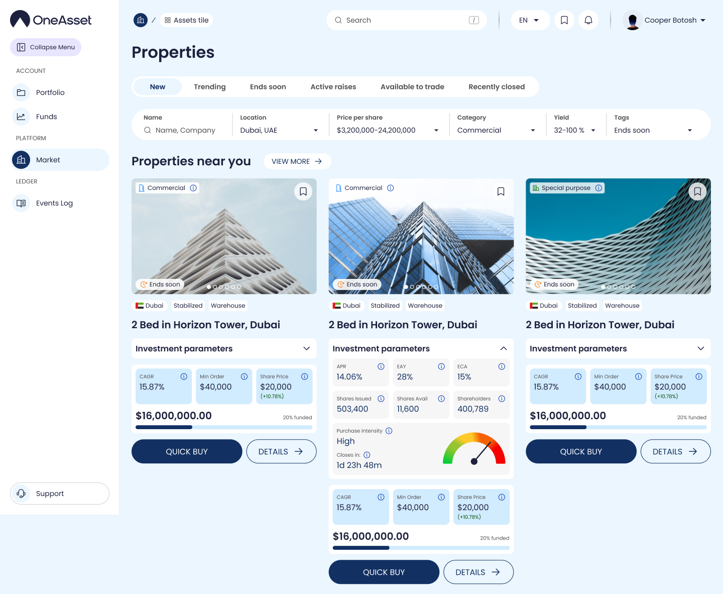 Finding properties (Map / Market filters / Quick/Flash invest)
