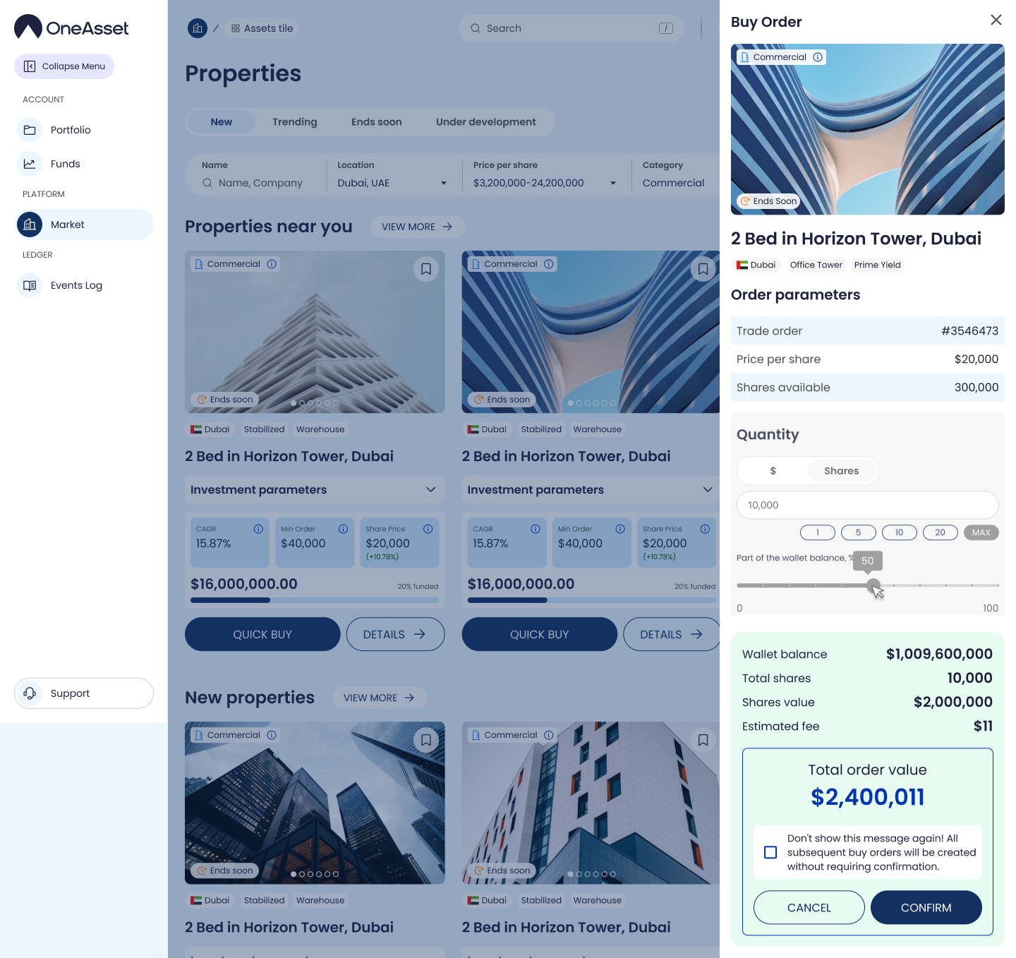 Click Confirm to place the order and proceed to wallet signing.