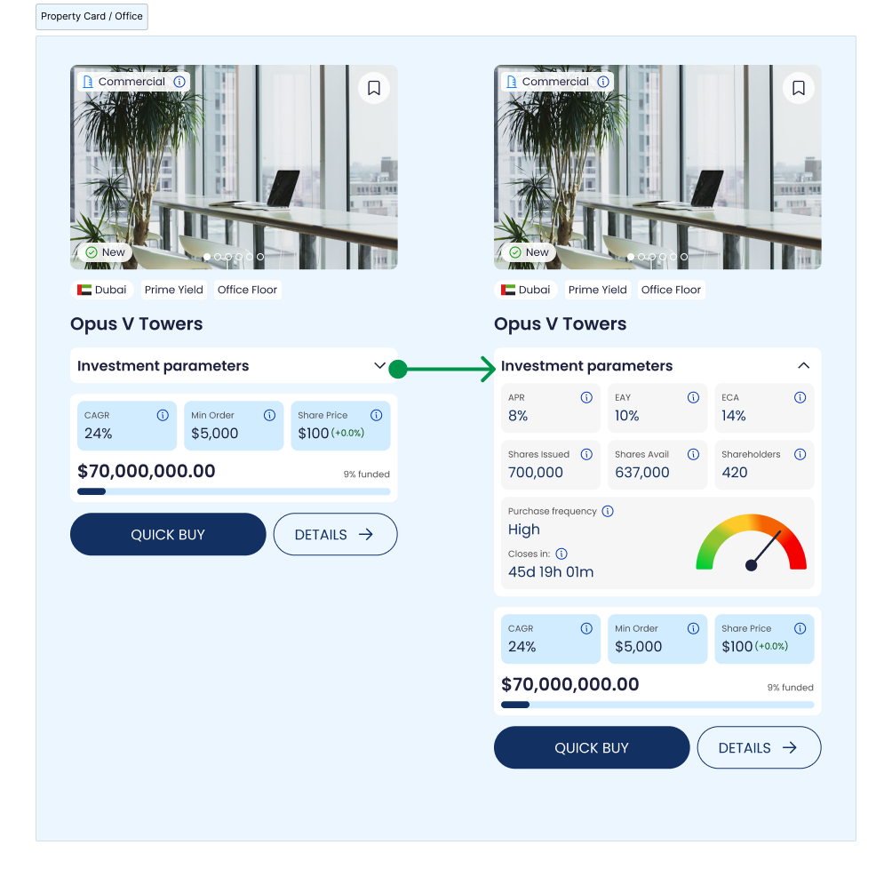 Click Buy from Quick Buy or from the property surface where Invest is available.