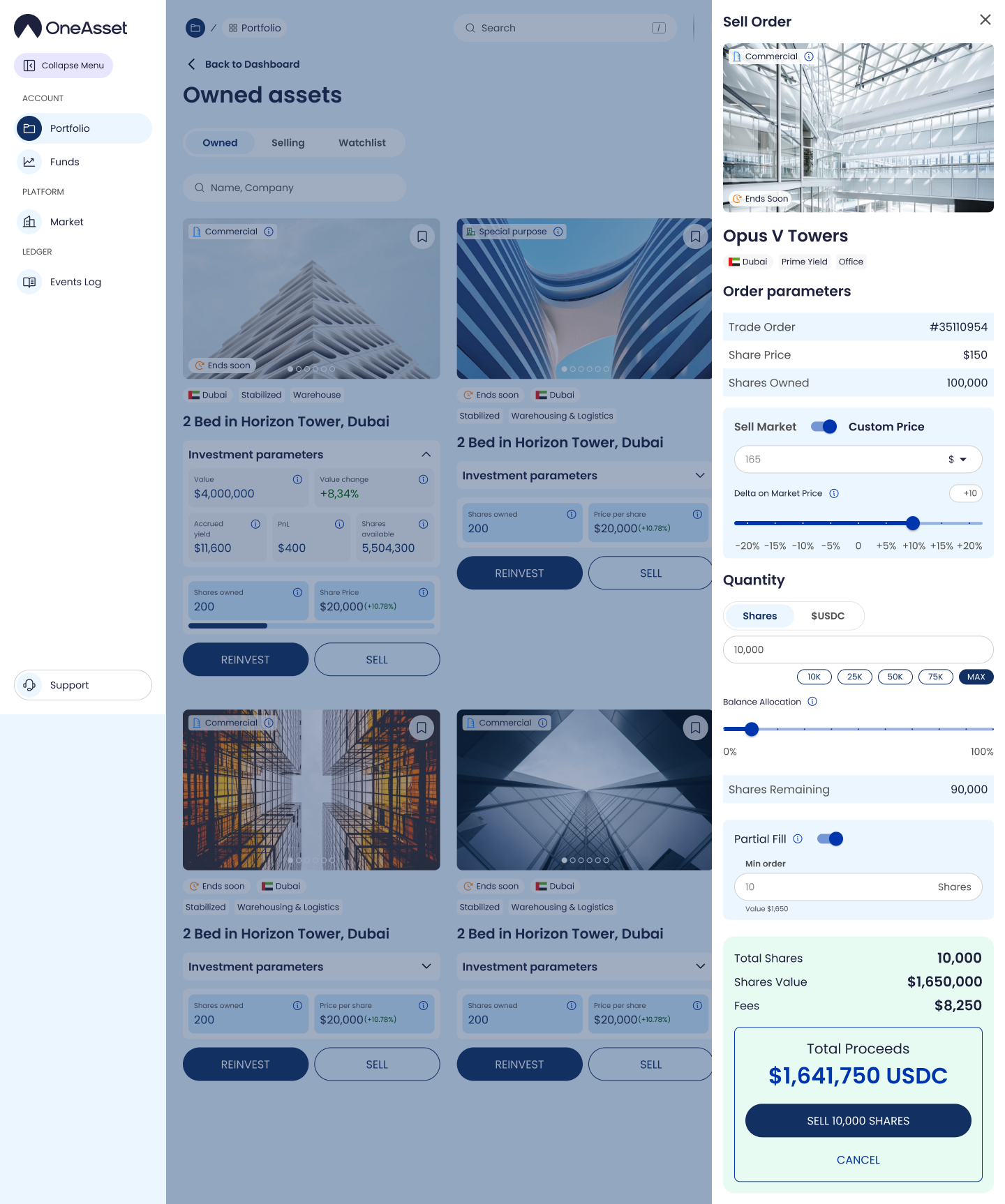 Partial fill rules define whether buyers can purchase a portion of your listed shares and what minimum purchase constraints apply.